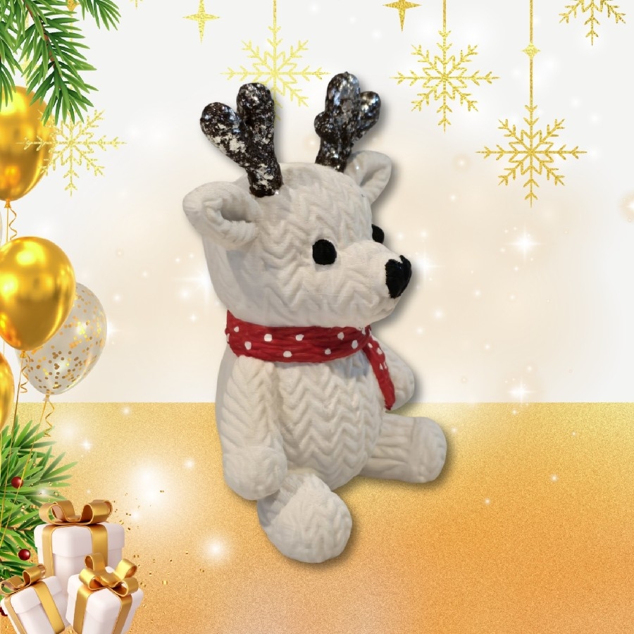 Örgü Desenli Geyik, yılbaşı sezonuna özel tasarlanmış, sevimli ve modern bir dekoratif 3D figürdür. Örgü efektli yüzeyi sayesinde klasik geyik figürüne sıcak, yumuşak ve el yapımı hissi veren estetik bir görünüm kazandırır.